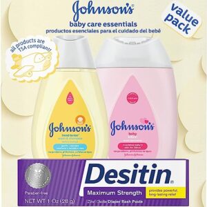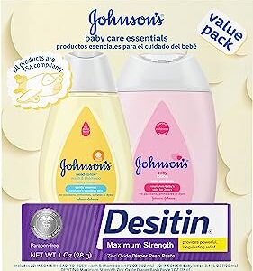 Johnson’s Baby Care Essentials Gift Set, Baby Skincare Set with Body Wash & Shampoo, Body Lotion, & Zinc Oxide Diaper Rash Paste for Baby’s Delicate Skin, Value Pack, Travel-Size, 3 Items