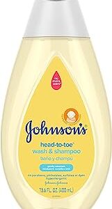Johnson’s Baby Head-to-Toe Gentle Wash & Shampoo, Tear & Sulfate-Free & Hypoallergenic Bath for Sensitive Skin & Hair, pH Balanced, Washes Away 99.9% of Germs, 13.6 Fl Oz