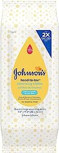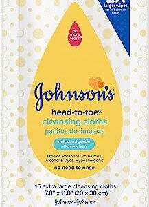 Johnson’s Head-to-Toe Gentle Baby Cleansing Cloths, Hypoallergenic and Pre-Moistened Baby Bath Wipes, Free of Parabens, Phthalates, Alcohol, Dyes and Soap, 15 ct