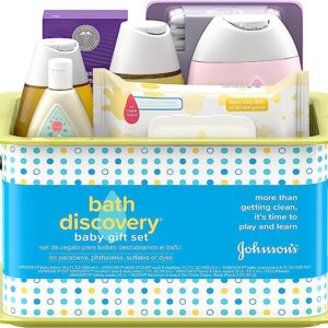 Johnson’s Bath Discovery Gift Set for Parents-to-Be, Caddy with Baby Bath Time & Skin Care Essentials, Bath Kit Includes Baby Body Wash, Shampoo, Wipes, Lotion & Diaper Rash Cream, 7 Items