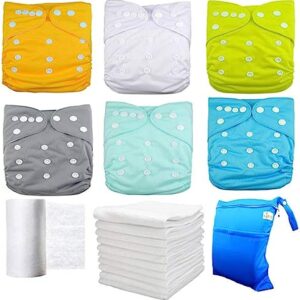 LilBit Adjustable 6 Baby Cloth Diapers,6 Inserts,Flushable Viscose Liners,Wet/Dry Bag