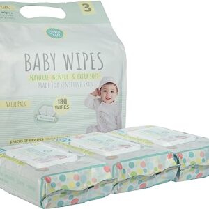 Little Me Baby Wipes, Natural and Extra Soft Baby Wipes, Hypoallergenic and Unscented Water Wipes, Flip Top Packs, 180 Count (3 Pack)
