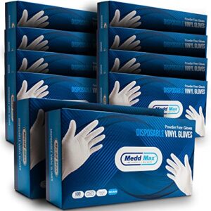 MEDD MAX Disposable Vinyl Gloves Powder Free Non Latex Allergy Free, Clear Multi-Purpose Heavy Duty Super Strength Plastic Rubber Vynil Cleaning Gloves, Medium (Pack of 1000)