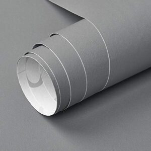 Mecpar 15.7In x 16.4Ft Solid Grey Wallpaper Self-Adhesive Grey Peel and Stick Wallpaper Matte Grey Textured Vinyl Film Removable Thicken Paper for Cabinet Shelf Liner Wall Backdrop