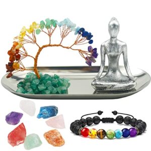 Meditation Accessories, Zen Spiritual Decor, 7 Chakra Crystal Tree Healing Stones and Yoga Statues, for Living Room, Office, Shelves, Mantle Decor, Birthday Gifts for Women