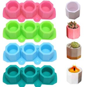 MeiMeiDa 4 Pack Mini Octagon Flower Pot Silicone Molds – Succulent Plant Planter Pot Mold Concrete Cement Plaster Molds, Silicone Ice Shot Glass Molds, DIY Craft Molds for Small Cactus or Seedlings
