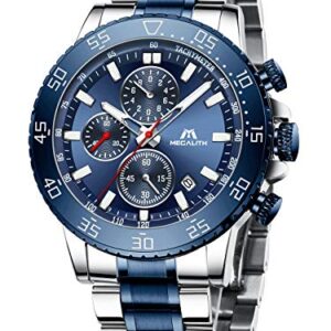 MEGALITH Mens Chronograph Watches Stainless Steel Man Waterproof Watch Luminous Gent Wristwatches for Men Fashion Business Classic Analog Quartz Date Watches