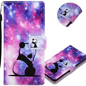 MEIKONST Xiaomi Redmi 9A case Stylish Colorful Painted PU Leather Wallet Flip Card Holder Kickstand Book Style Magnetic Cover Compatible with Xiaomi Redmi 9A Meteor Panda YB3