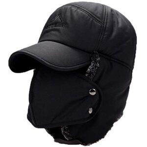 Men Trapper Hat Bomber Hats Winter Trooper Ushanka Ear Flaps Hats Aviator Snow Windproof Thermal Faux Fur Warm Hunting Skiing Cycling Cold Weather Hats Earflaps Baseball Caps Dad Hats with Face Mask