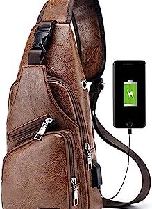 Men Sling Bag Lightweight Waterproof Shoulder Crossbody Bag with USB Charging Port Brown