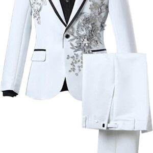 Mens 2 Pieces Luxury Embroidered Suits 1 Button Print Dinner Tuxedo Jacket Pants Prom Wedding Elegant Blazer Dress Suit