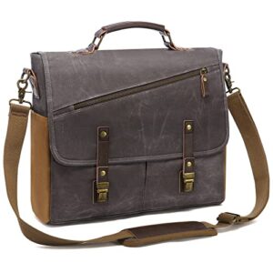 Mens Messenger Bag, LOVEVOOK 15.6 Inch Waterproof Waxed Canvas Briefcase Vintage Leather Computer Laptop Book Bag Large Satchel Shoulder Bag for Work, Travel, School