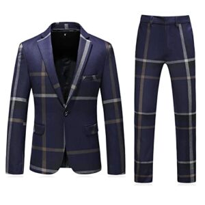 Mens Plaid Suit Slim Fit 2 Piece Casual Tuxedo Suit for Men Formal Blazer Pants Tuxedo Set for Wedding Business Party