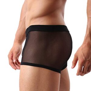 Mens Sexy Underwear Breathable Mesh Boxer Briefs See Through Hollow Lingerie