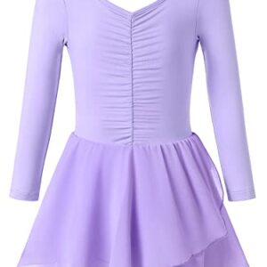 MERIABNY Long Sleeve Leotards for Girls Ruched Front Dance Ballet Outfits for 3-9 Years