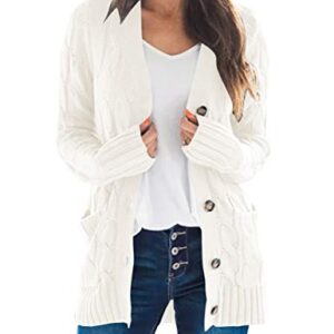 MEROKEETY Women Long Sleeve Cable Knit Sweater Open Front Cardigan Button Loose Outerwear