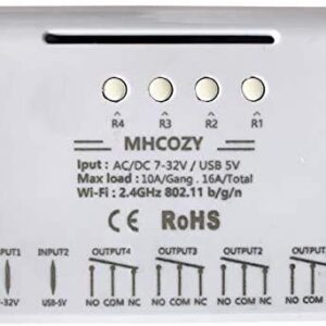 MHCOZY 4CH WiFi RF Wireless Switch Relay,Inching Self-Locking Interlock Mode,for Access Control Smart Garage Door,Compatible with Alexa Goolge Home