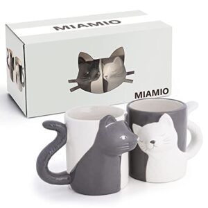MIAMIO – Kissing Cat Mugs Set / Coffee Cups, Cat Lover Couple Gifts for Men / Women, Signature Collection (12 oz)