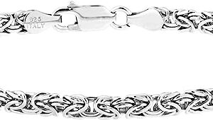 Miabella 925 Sterling Silver Italian 4mm Flat Byzantine Link Chain Bracelet for Women Teens, 925 Made in Italy