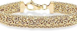 Miabella 18K Gold Over Sterling Silver Italian Byzantine Beaded Mesh Link Chain Bracelet for Women 6.5, 7, 7.5, 8 Inch 925 Handmade in Italy