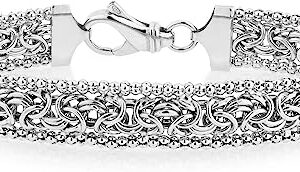 Miabella 925 Sterling Silver Italian Byzantine Beaded Mesh Link Chain Bracelet for Women, 925 Handmade in Italy