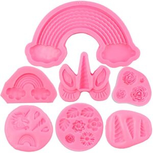 Mini Unicorn Mold Set, Unicorn Horn Rainbow Flowers Silicone Cake Fondant Mold, Cupcake Toppers Mold for Candy,Chocolate,Fondant,Polymer Clay,Soap,Crafting Projects & Cake Decoration