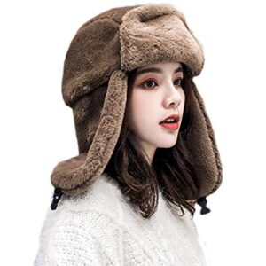 MioCloth Faux Fur Hat Winter Earflap Hat Russian Ushanka Hat Fur Lined Earflap Winter Cap