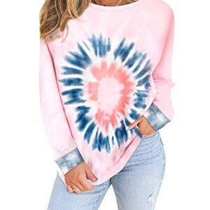Misyula Style Women Tie Dye Sweatshirt Color Block Long Sleeve Crewneck Oversized Tshirt