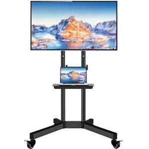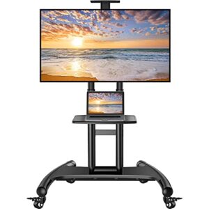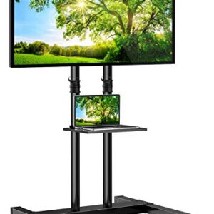 Mobile TV Stand with Wheels for 32-80 Inch LCD LED 4K Flat Screens with Wheels – Height Adjustable TV Cart Rolling TV Stand with Laptop Shelf, Outdoor TV Stand – Max VESA 600×400, Black