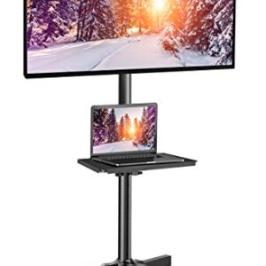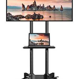 Mobile TV Stand, Rolling TV Stand with Wheels for 32-85Inch LED, LCD, OLED Flat&Curved TVs, Height Adjustable TV Cart with Laptop Shelf and Locking Wheels, Holds Up to 132lbs Max VESA 600x400mm, Black