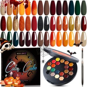 Modelones 21 Colors Fall Gel Nail Polish Set, Orange Green Red Solid Gel Polish Nude Brown Glitter Pudding Gel Upgraded Crème Manicure Palette Soak Off LED Nail Art Kit DIY Halloween Gift, W/ Brush